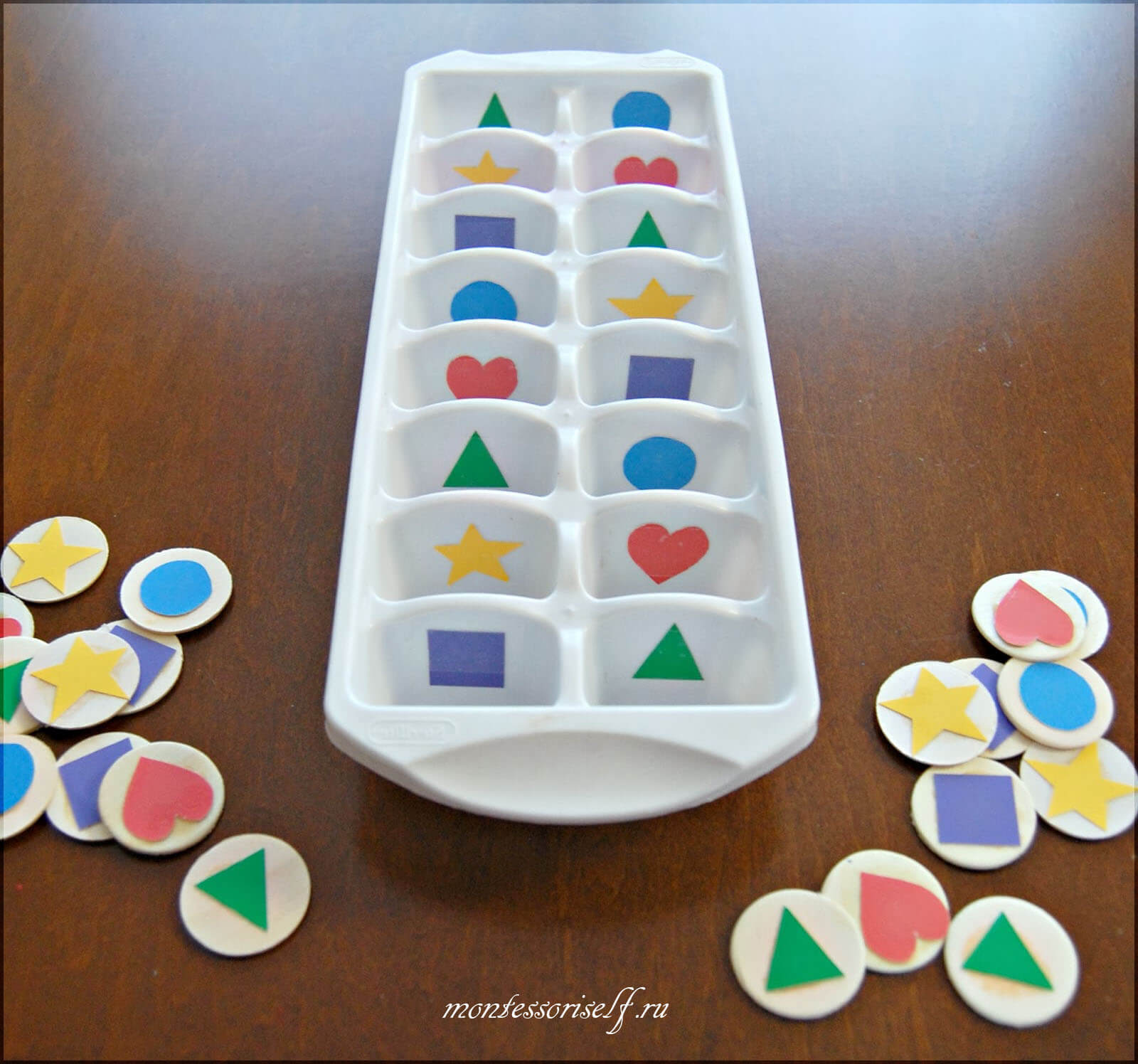 Метою даного заняття повинно стати досягнення того, щоб дитина сам навчився сортувати різні предмети за формою, кольором, матеріалу і т. д. Наприклад, можна заздалегідь вирізати 4 кружечки різних кольорів і підготувати 4 коробочки цих же кольорів. Потім попросити малюка, щоб він поклав кожен з цих кружечків у коробці відповідного їм кольору. Червоний кружечок – в червону коробку, і т. д.