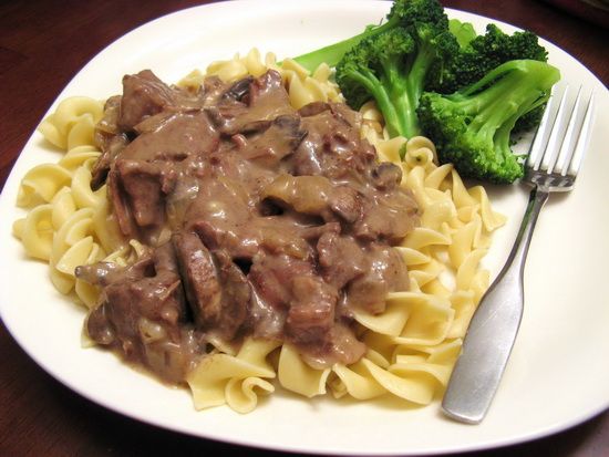 • М’ясо по строгановськи. Для приготування цієї страви потрібно 600 гр. яловичини порізати тонкими брусочками не більше 4 див. Потім дві цибулини нарізати півкільцями. Обсмажити на сковороді близько десяти хвилин. Потім м’ясо обваляти в двох столових ложках борошна і додати до цибулі, обсмажуючи близько 40-50 хвилин. Поки смажиться м’ясо господині варто зайнятися приготуванням соусу. Для приготування соусу потрібно змішати півсклянки води, 150 гр сметани, 2 ст. л. томатної пасти, сіль. Обсмажене м’ясо перекласти в казанок, додати соус і тушкувати протягом години.