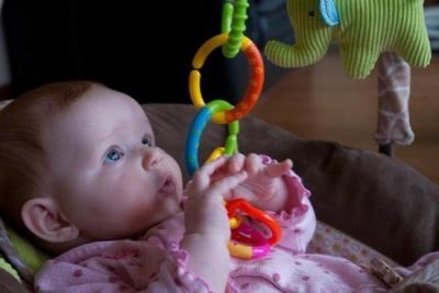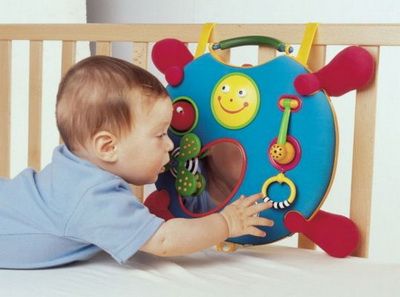 Використовуйте для цього розвиваючі іграшки, розвиваючий коврик для немовлят, розвиваючі кубики, для дітей постарше кубики, різних форм і кольорів, пірамідки і т. д.