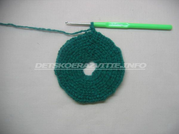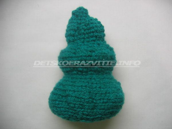 Слідуючи в одному напрямку по кільцю, в’яжуть п’ять рядів, використовуючи такий прийом, як стовпчик без накиду. У кожної третьої петлі кожного ряду необхідно додавати по одній петлею. Таким чином формується дно в’язаній ялинки.