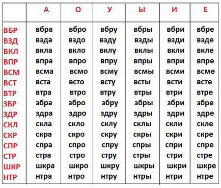 Придбайте кілька листочків зі складами. Читання складів виконується з секундоміром, дитина з кожним разом повинен читати короткі склади швидше. Далі можна переходити до більш складних складах з 3 — 4 букв.