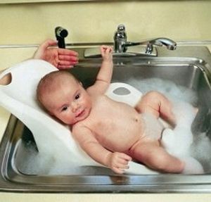 Фотографія 2 ілюструє креативний підхід батьків до вирішення проблеми. Тільки новонародженого ні в якому разі не можна залишати самого в раковині.