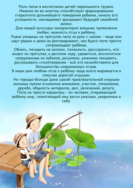 Батько відіграє величезну роль у житті сина. Він виступає в ролі тренера, який повинен показати, як правильно приймати удари і як варто оборонятися. Дуже важливо навчити майбутнього чоловіка захищати своїх близьких.
