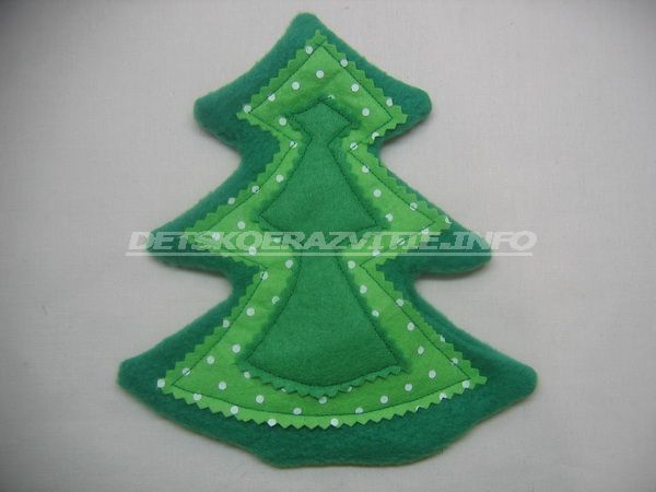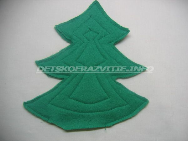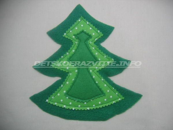 Таким же способом поверх попередньої деталі пришивають саму меншу за величиною фетровий ялинку.