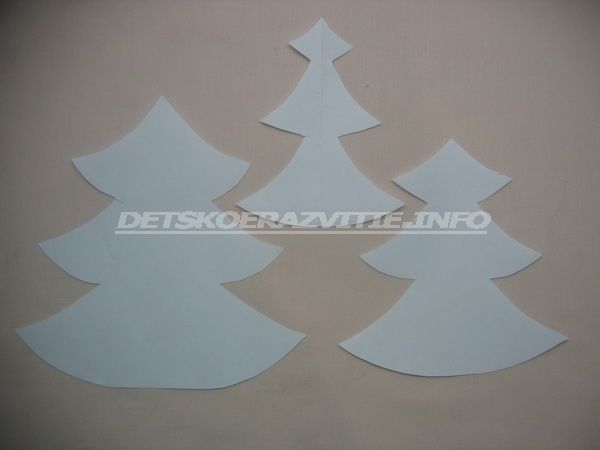 Перед пошиттям продемонстрованої м’якою ялинки з соковито-зеленого фетру, потрібно підготувати три шаблону даної вироби різної величини.