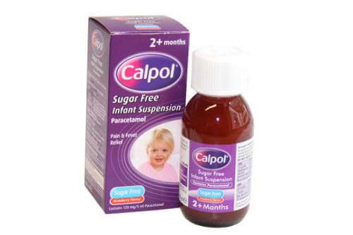 • Калполосновний діючий компонент – парацетамол з смаковими і підсолоджувальними добавками. Це однорідна суспензія рожевого кольору і приємним запахом полуниці. Дітям сподобається ніжний смак ліки і прийом жарознижуючий засіб не буде утруднений. Застосовувати дане жарознижуючий засіб для дітей можна вже з місячного віку. З протипоказань назвемо наступні: гіперчутливість, тяжкі форми захворювань нирок і печінки, захворювання крові. З побічних реакцій іноді зустрічаються алергічні симптоми, болі в животі, блювання, в окремих випадках – лейкопенія, анемія. Мірна ложка допоможе відміряти потрібну дозу.