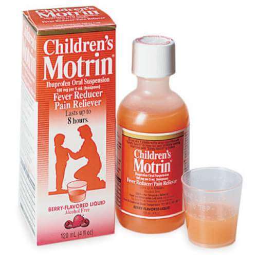 • Дитячий Мотрин. Ще один представник групи похідних пропіонової кислоти. Основна діюча речовина – ібупрофен. Позитивний ефект спостерігається протягом 8 годин. До протипоказань відносяться гіперчутливість, виразкові хвороби шлунка, бронхіальна астма, порушення кровотворення, дисфункція нирок або печінки. Жарознижуючий засіб для дітей Дитячий Мотрин може викликати наступні побічні ефекти: нудота, блювання, безсоння, висипання, набряк Квінке. Але подібні наслідки трапляються вкрай рідко. Продається препарат у вигляді суспензії з дозатором і мірним ковпачком і у вигляді крапель: