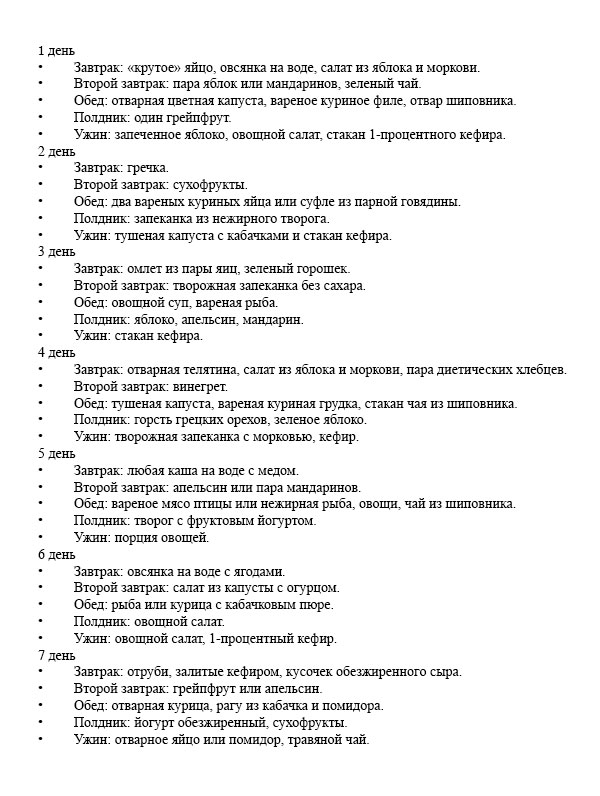 Дієта Малишевої-меню на тиждень-безкоштовно