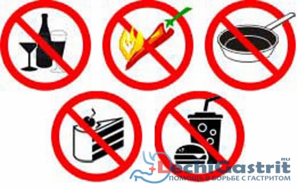 Рекомендації з організації харчування радять відмовитися від прийому алкоголесодержащих напоїв, газованих напоїв з газами, занадто гарячих або холодних страв, оскільки це може спровокувати загострення патології. Особливо це актуально при наявному хронічному гастриті.