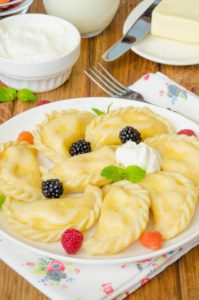 • 19:00. На вечерю можна з’їсти вареники з картоплею або сиром, компот.