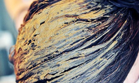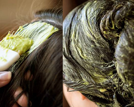 Всі складові компоненти перемішуються з особливою ретельністю. Масажними рухами засіб втирається пальцями в коріння волосся. Накрити голову поліетиленом і рушником. Тримати дві години. Потім масу змити з застосуванням шампуню.