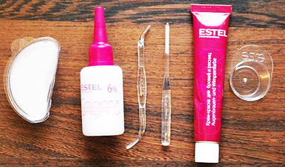 Я вже давно не користуюся олівцем або тінями для оформлення брів. Мені набагато зручніше фарбувати їх спеціальними стійкими сумішами. Пробувала різні фарби, але зупинила свій вибір на продукції компанії Естель. У них кошти дуже м’які, і хоча у складі будь-якого окислювача є перекис водню, в цьому випадку активний компонент присутній у мінімальній кількості.