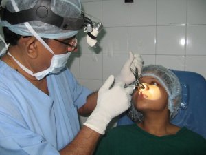 Радикальна операція методикою Колдуелла-Люка робиться через присінок ротової порожнини.