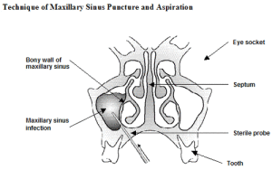 - діагностична пункція) проводять якщо є ознаки синуситу і дані рентгенодіагностики, якими виявили патологічні зміни в пазусі, особливості її анатомічної будови і розташування щодо інших органів