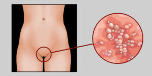 Генітальне герпетичне інфікування полягає в двох етапах: як бульбашки, наповнені рідиною на інтимних областях у чоловіків і у жінок, так і утворюються ранками згодом бульбашок, що лопнули.