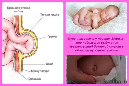 Пупкова грижа є найпоширенішою. Частіше спостерігається у немовлят, що вважається нормальним явищем. Хвороба проходить до 6 місяців. Якщо ж грижа з’явилася пізніше, то потрібна професійна допомога. Чому з’являється захворювання? Недуга утворюється при частих запорах, нестачі активності. Пупкова грижа виникає з болями в області пупка. Знижується апетит, з’являється млявість. Лікування проводиться з масажем, а якщо з часом грижа не зникає, то потрібна операція.