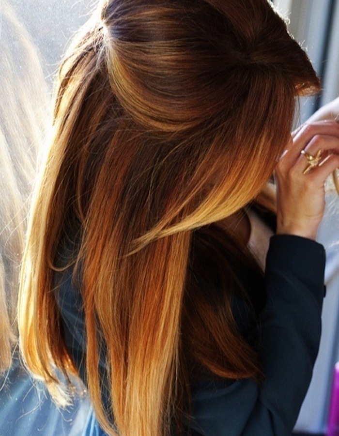 Ця новинка модної індустрії, яка вже прикрасила собою голови захоплених модниць. Зачіска заснована на змішанні трьох відтінків – золотистого, коричневого і мідного. Ця техніка більше підходить представницям зимового кольоротипу з блідою шкірою і холодними очима.