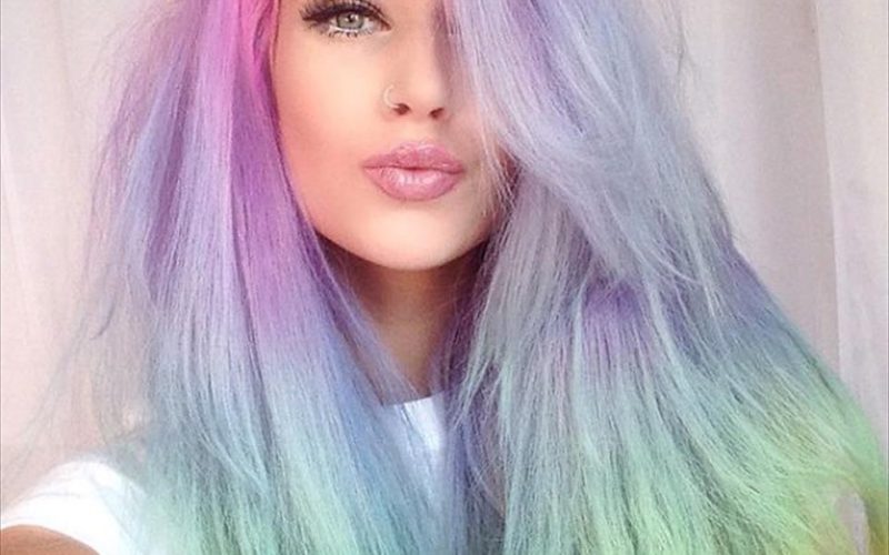 Для любителів експериментів із зовнішністю і бажаючих звернути на себе увагу. Підійде ця нова техніка, при якій використовуються відтінки зеленого, фіолетового, темно-синього і рожевого. Ваша шевелюра буде переливатися всіма кольорами веселки і притягувати до себе захоплені погляди. Фарбування модні кольори волосся для брюнеток 2017 у райдужній техніці особливо популярно серед тинейджерів і молоді.