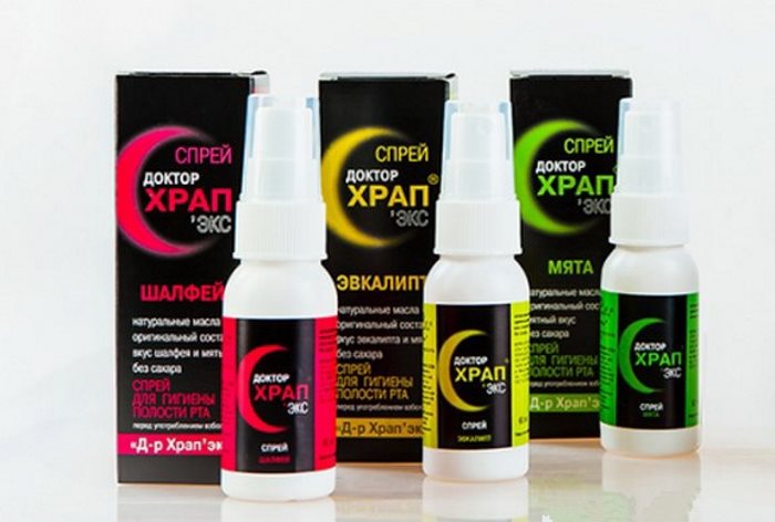 Можна придбати спрей доктор хропіння (відгуки допоможуть зробити правильний вибір) в різних інтерпретаціях, наприклад, з ароматом шавлії, м’яти або з переважно евкаліптовим запахом.