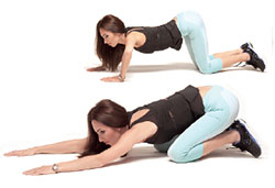 Ходьба на сідницях. Необхідно сісти на килимок на підлозі, зігнути руки, висунути спочатку одну ногу вперед спільно з ногою, допомагаючи при цьому всім тілом, далі зробити ще один такий «крок» вже інший ягодицей і ніжки. Необхідно виконувати як можна плавно. Таким чином «прогуляйтеся» кілька метрів, а потім повернутися таким же способом. Повторити цю вправу чотири рази.