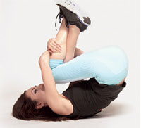Перекати. Сівши на підлогу, потрібно буде схрестити ноги, підняти коліна біля грудей і опустити голову. У цій позиції плавно перекочуватися спочатку назад на лопатки, а потім назад. Повторити 6 разів.