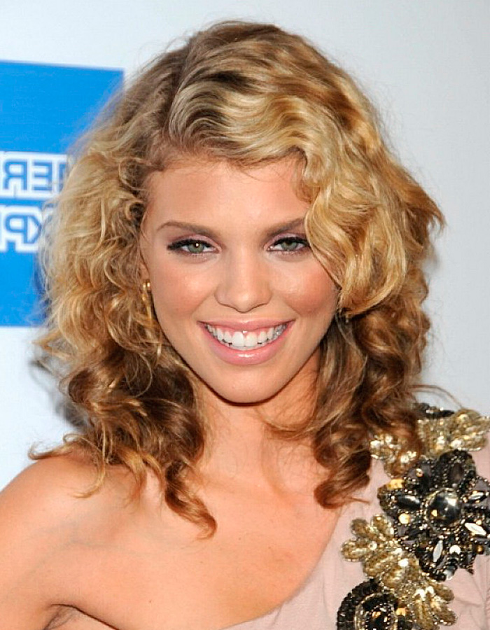 Багаторівнева стрижка або каскад добре лягає, красиво повторює форму кучериків і робить володарку кокетливою і привабливою.