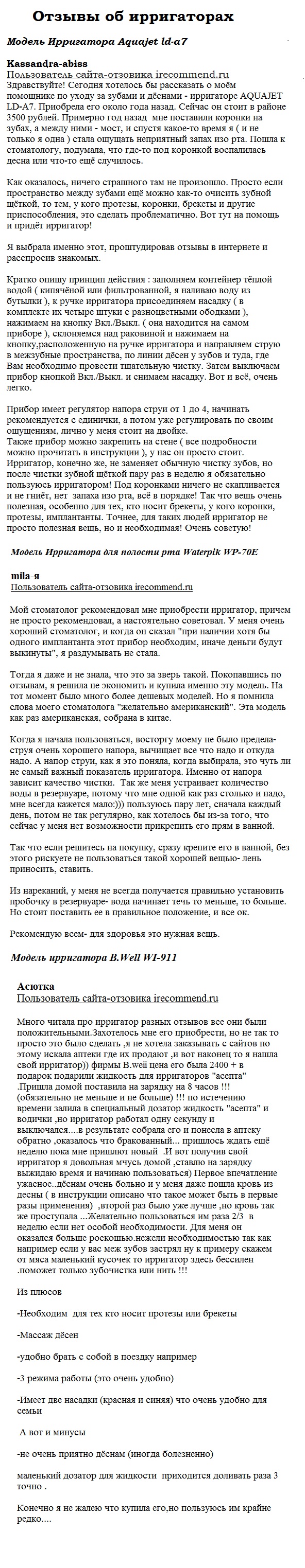 Щоб правильно вибрати прилад для чищення зубів-іригатор, корисно буде, вже ознайомившись з особливостями різних фірм, почитати реальні відгуки тих, хто вже використовував.