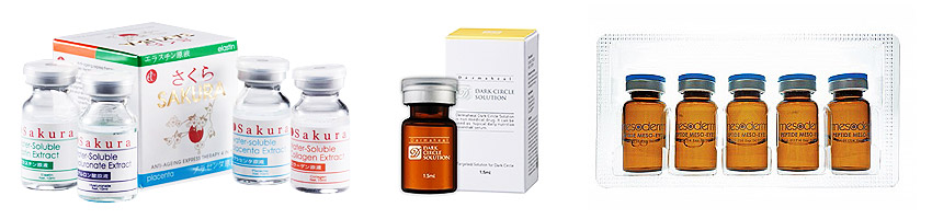 - Японія. Японські препарати для мезотерапії випускаються під брендом Сакура. Лінійка цих коштів представлена препаратами для різних вікових груп (до 35 років, від 35 до 45 років і старше 45 років). До складу мезококтейль входить гіалуронова кислота, колагенові і еластинові волокна, плацента.