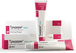 Існує безліч медикаментозних засобів, які здатні надати допомогу в лікуванні грибкової та бактеріальної інфекції шкіри, зупинити запальний процес, надаючи терапевтичний вплив. Ефективним і універсальним засобом такого плану є унікальна за своїми властивостями мазь Тридерм. Це ліки надає комплексну дію, що ґрунтується на складових активних компонентах. Тридерм використовують при запальних процесах на фоні дерматитів, ускладнених наявністю вторинної інфекції.