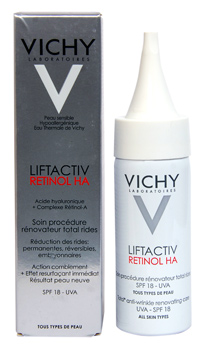 Vichy Liftactiv Retinol – якісний аптечний крем з ретинолом, рекомендується до застосування після 40 років. Крем випускають у зручному флаконі з дозатором — носиком, тому він витрачається дуже економно. До плюсів препарату відносять прекрасне омолоджуючу дію. Застосування продукту забезпечує розгладження навіть глибоких зморшок, шкіра стає пружною, підтягнутою і виглядає свіжою і молодий. До складу крему, крім ретинолу, входять компоненти, що забезпечують захист шкіри від УФ – випромінювання. До мінусів косметичного засобу відносять високу ціну при мінімальному обсязі. Так, упаковка препарату об’ємом 30 мл коштує від 2000 рублів.