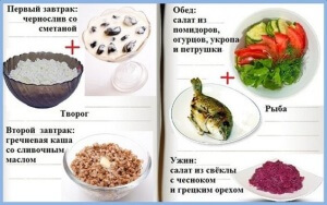 Приклад можна побачити в трьох видах меню на кожен день, які вже складені у відповідності з усіма принципами цієї дієти.