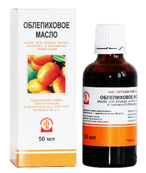 Флакончик з маслом обліпихи можна купити в аптеці, але якщо на вашій присадибній ділянці росте цей кущ, рекомендується приготувати цінний продукт самостійно. Для цього збирають ягоди обліпихи, промивають і віджимають через прес. Отриманий сік зливають в скляну банку і ставлять її в темне місце на 2 тижні. За цей час на поверхню піднімається шар масла, який потрібно зібрати за допомогою шприца і пропарити на водяній бані протягом 15 хвилин. Готовий продукт переливають в підходящу ємність, зберігають у холодильнику.