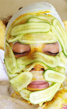 - Гуртки або смужки огірка покласти на обличчя і потримати деякий час.