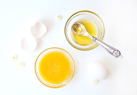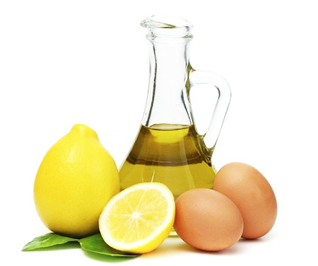 Для приготування маски потрібно 3 столові ложки олії, змішати з одним яєчним жовтком, додати одну ложку лимонного соку. Маску наносять спочатку на область коріння волосся, а потім рівномірно розподіляють по всій довжині локонів. Залишають подіяти як мінімум на 20 хвилин, потім усувають під теплою водою.