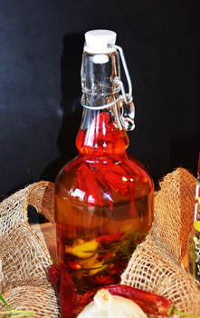 Маска, прискорює ріст волосся. Візьміть по одній столовій ложці олії оливи і перцевої настоянки. Ретельно розмішайте інгредієнти, нанесіть суміш тільки на корені, так як в настоянці присутній спирт, який може сильно висушити волосся. Не залишайте цю маску надовго – в середньому час витримки дорівнює 15-20 хвилин.