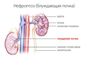 • швидка втрата великої кількості маси тіла (зменшення ниркової капсули, сформованої жировою клітковиною)