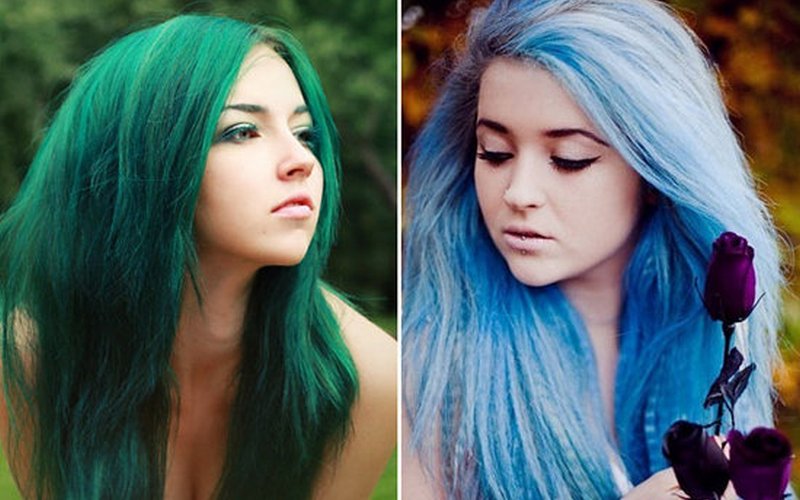 Деякі незвичайні і яскраві кольори також відмінно поєднуються з зеленими очима. Бірюзовий блакитний колір волосся як правило вибирають юні дівчата. В результаті виходить дуже контрастний, яскравий і водночас ніжний образ.