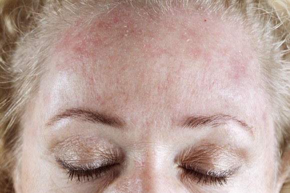 - Хронічні шкірні хвороби, такі як псоріаз і екзема. Вони можуть вражати не тільки дерму, але і волосяні фолікули, позбавляючи їх харчування або навіть руйнуючи. При локалізації симптомів на обличчі в патологічні процеси можуть залучатися і брови.