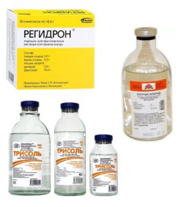 - Препарати для відновлення водно-сольового балансу. Ця група ліків включає: Регідрон, Лактосоль, Трисоль. Застосовуються для запобігання зневоднення, викликаного реакцією організму на кишкову інфекцію.