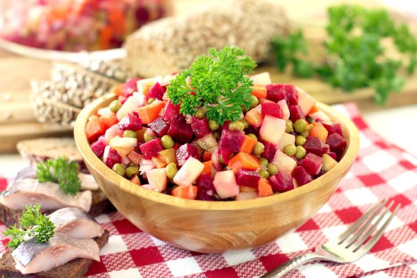 Звичайно, ви вже здогадалися — це вінегрет. У нашому дієтичному варіанті ми додамо в нього дуже мало картоплі. При бажанні ви можете зовсім її не додавати.