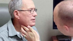 - Огляд. При першому відвідуванні лікар здійснює огляд глотки на предмет наявності будь-яких утворень або будь-яких інших помітних змін. Крім цього, при огляді лікар обмацує можливу область ураження, що дозволяє визначити наявність пухлини.