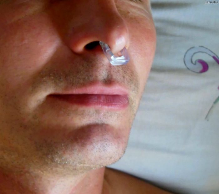 - кліпса допомагає позбавитися від хропіння, скрипу зубами, запобігає розвитку апное;