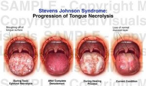 Синдром Стівенса-Джонсона, це алергічне захворювання, що протікає в дуже важкій формі токсичного епідермального некролізу. Тобто на тлі алергічної реакції організму починає відбуватися відмирання клітин на слизових.