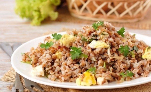 • яйце очистіть, розріжте на дві половини і покладіть до гречки.