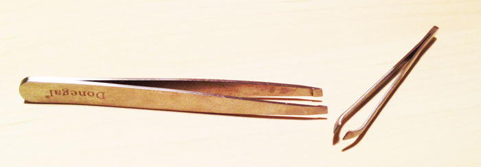 Наступний метод заснований на механічному висмикування волосся. Напевно, у кожної жінки є в будинку пінцет, яким вона подщипывает одиничні волоски або коригує брови. Цілком підходить пінцет для видалення невеликих вусиків над губою. Великі ділянки тіла обробляти таким чином теоретично можливо, але дуже трудомістко. Користуватися пінцетом можна всім без винятку, дотримуючись лише запобіжні заходи: шкіра та інструмент повинні бути продезінфіковані до і після процедури.