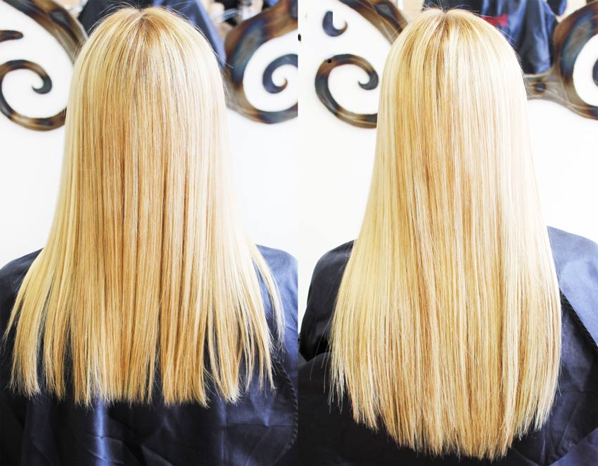 - Живі волосся не травмуються. При дотриманні правил коригування на них не виявляється негативного впливу, що сприяє їх зростанню і можливості мати власні довге волосся.