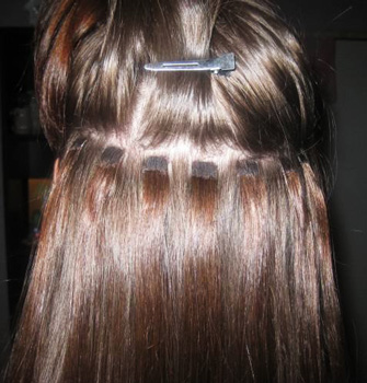 Заздалегідь підготовлені донорські пасма рівномірно розподіляються на стрічці, на одну сторону якої нанесений безбарвний гіпоалергенний клей без запаху. Приклеюється сторона закрита захисною плівкою, яку перед застосуванням обережно видаляють, не доторкаючись до клейового шару. Місце склеювання повинно бути ретельно підготовлено до процедури.