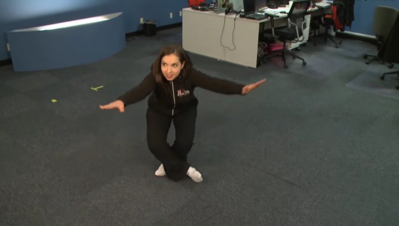 1. Встаньте на підлогу без взуття і перехрестіть ноги. На початку вправи у вас 10 очок.