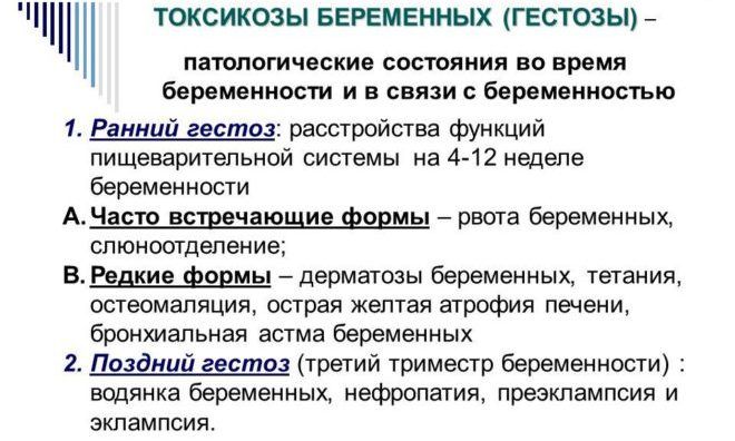 Такий стан зазвичай починається з збільшення артеріального тиску на шостому місяці вагітності, часто закінчуючись збоєм в роботі певних органів, наприклад, нирок. Для правильної діагностики пізнього токсикозу необхідно регулярне відвідування та консультації гінеколога. Крім того, проводиться аналіз крові для визначення функцій нирок і печінки. У жінок з гестозом (пізнім токсикозом) підвищений ризик передчасного відділення плаценти від стінки матки. Цей стан може викликати сильне кровотеча, що загрожує життю матері і дитини.