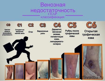 Згідно медичній літературі, варикоз має сім окремих стадій, для кожної з яких характерні певні симптоми та індивідуальне лікування. Слід пам’ятати, що вилікувати варикоз можна на будь-якій стадії, але найкраще розпізнати хворобу якомога раніше: в такому випадку можна уникнути операцій.